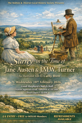 Cathy will be speaking on “Surrey in the time of Jane Austen & artist JMW Turner”, bringing the period vividly to life through images, stories, and place.